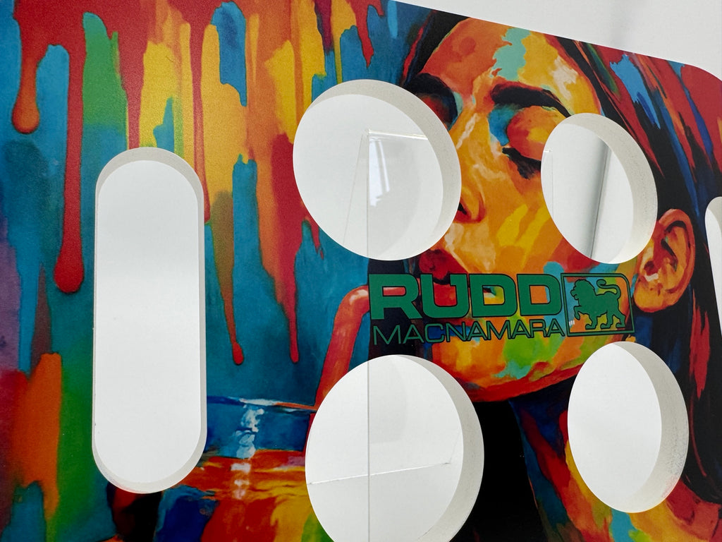 Si un ajustement des couleurs est nécessaire, un échantillon de la couleur à reproduire sera requis ; sinon, les couleurs du travail seront déterminées par le design que vous nous envoyez. Veuillez noter que les couleurs prennent une teinte très différente lorsqu’elles sont rétroéclairées. Lorsque nous produisons des lentilles sur matériau transparent, en acrylique clair, nous ajustons la couleur à la version illuminée. Dans ce cas, si vous souhaitez que nous ajustions pour une version non illuminée, veuillez nous en informer.Images